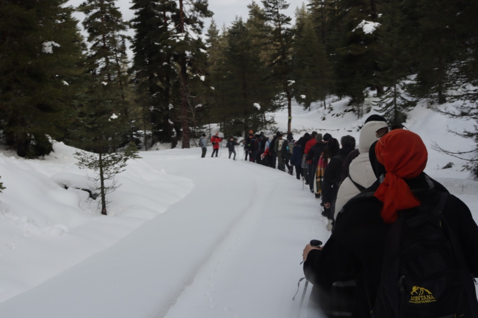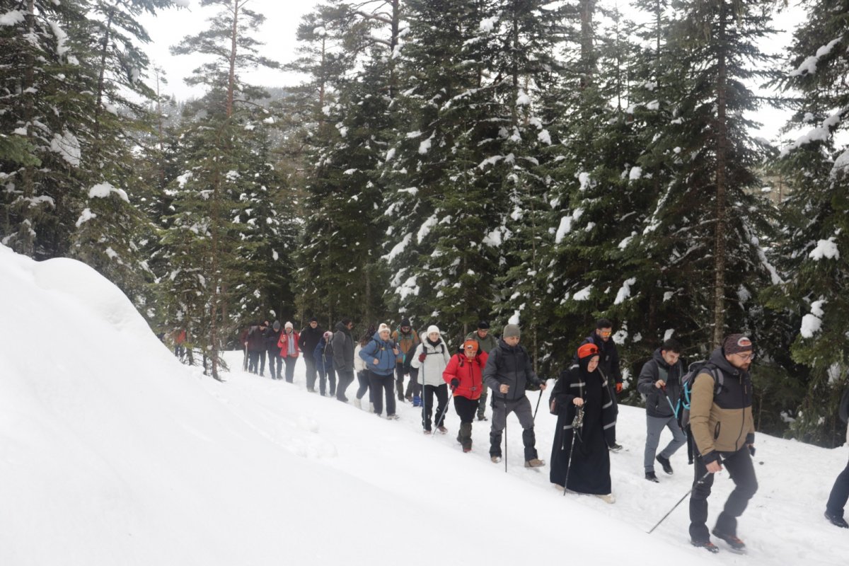 Karla kaplı çam ormanları arasında yapılan yürüyüşe toplam 42 doğasever katıldı. Beyaz örtüyle kaplanan doğanın içinde ilerleyen katılımcılar, hem fiziksel aktivite yapmanın hem de temiz dağ havasını soluyarak doğayla baş başa kalmanın keyfini yaşadı. Zaman zaman sisin de etkili olduğu parkurda oluşan manzaralar, katılımcıların cep telefonları ve fotoğraf makineleriyle ölümsüzleştirildi.