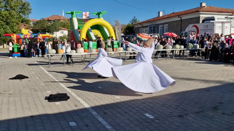 Programda, bal kabağından yapılan tatlılar misafirlere ikram edildi. Renkli görüntülere sahne olan festivalde çocuklar da unutulmadı. Minikler, oyun gruplarında gönüllerince eğlenirken kendilerine pamuk şekeri dağıtıldı.