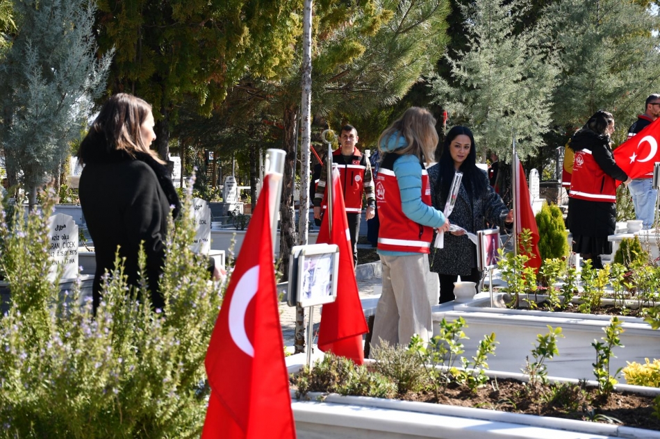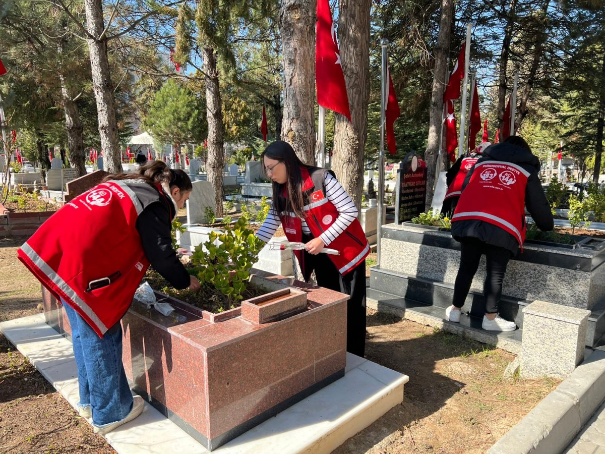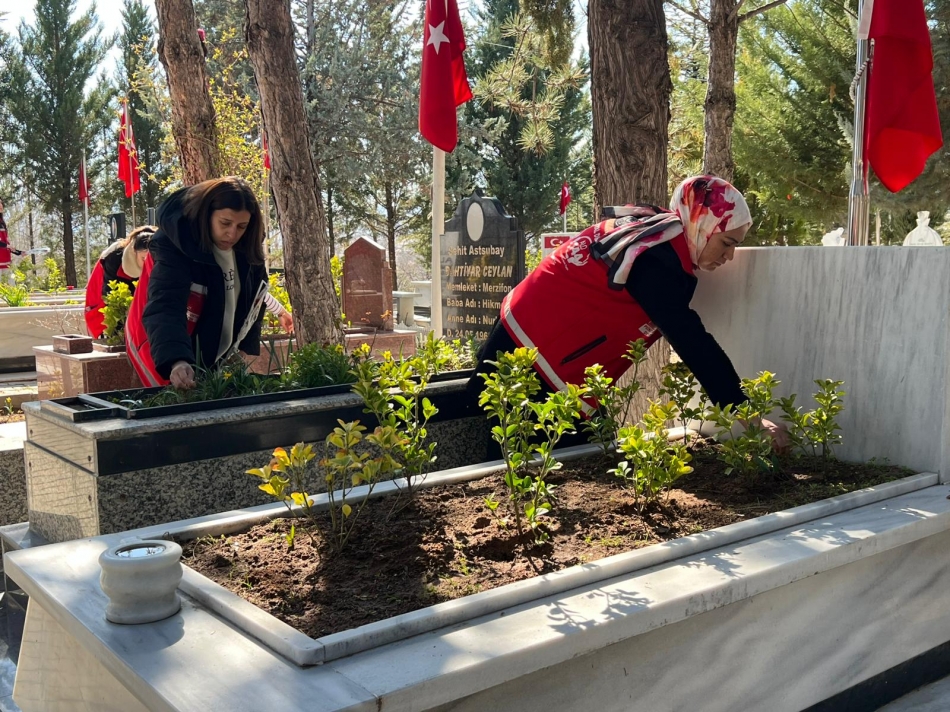 Şehit kabirlerine bakım yapıldı, karanfiller bırakıldı
