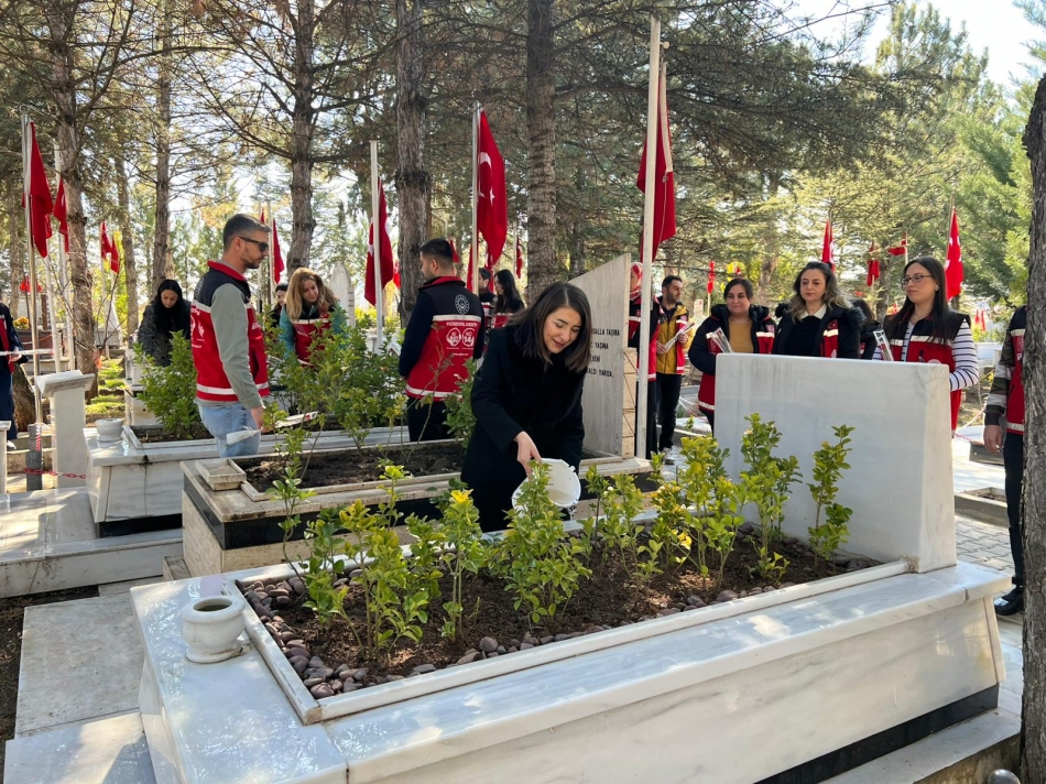 Ziyarete İl Müdürü Çiğdem Açıkyıldız Kazel de katılarak kurum personeliyle birlikte yürütülen çalışmalara eşlik etti. Şehitlikte gerçekleştirilen programda kabirlerin bakım, onarım ve temizlik çalışmaları titizlikle yapılırken, ziyaretin sonunda şehitlerimizin kabirlerine karanfiller bırakıldı.
